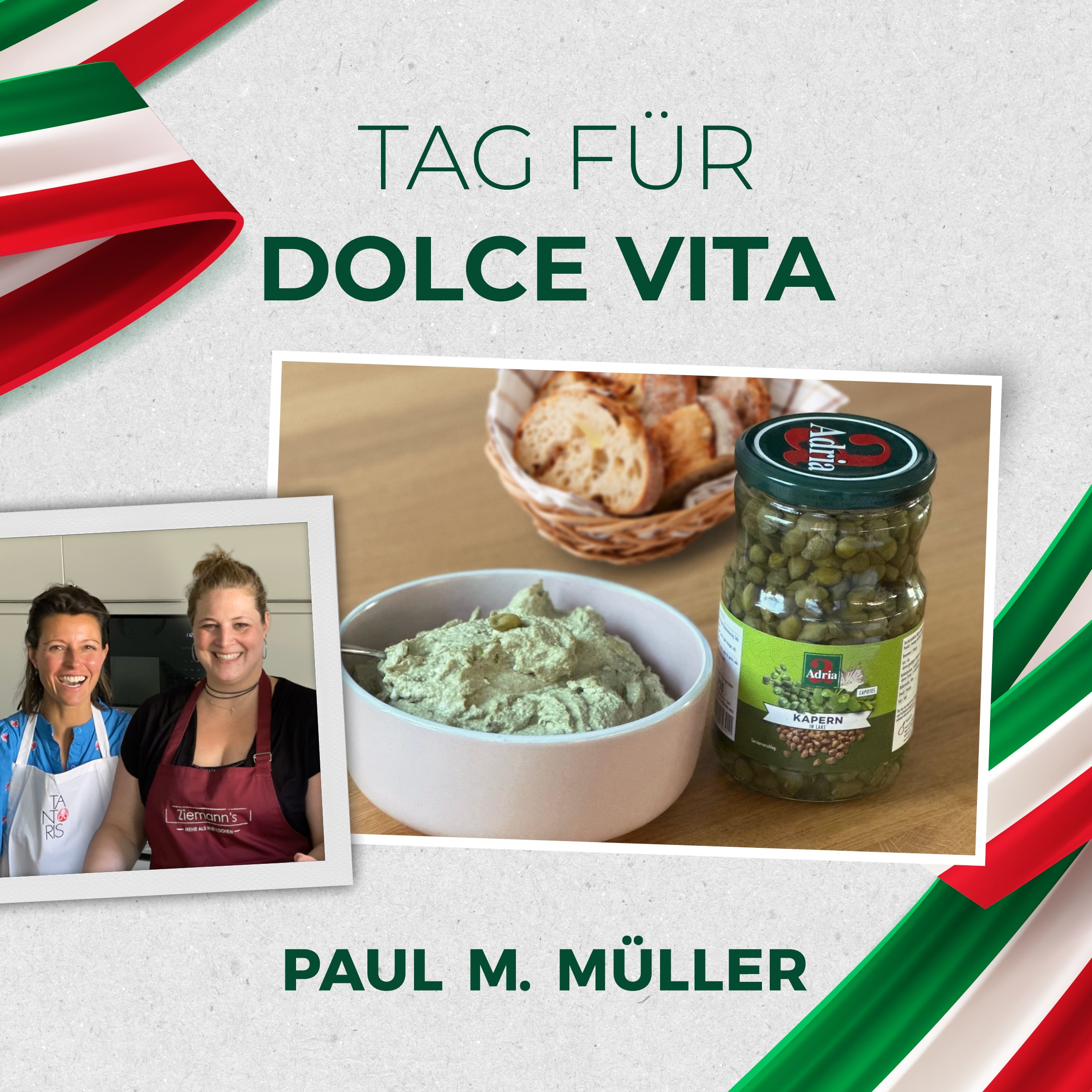 „Tomaten, Kapern, Artischocken: Unsere Lebensmittel der Marke ADRIA bieten alles, was es für klassische, italienische Gerichte braucht“, sagt Thomas Schneidawind, Geschäftsführer von Paul M. Müller. Er weiß: Mediterrane Gerichte sind nicht nur mega lecker, sondern auch super leicht und gesund. Die Überraschung ist gelungen.